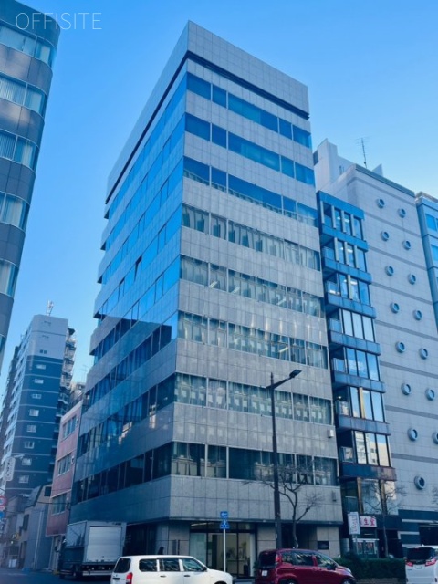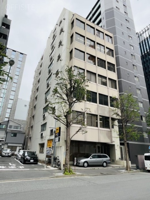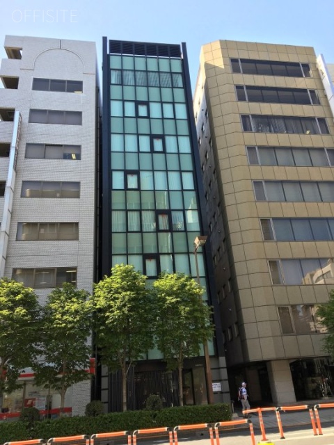 昭和通り沿いに面した立地で近くには首都高が通っており、周辺は大型ビルが建ち並ぶ都心部のオフィス街らしい雰囲気ですが、整備された歩道には緑の映える植栽も施されています。