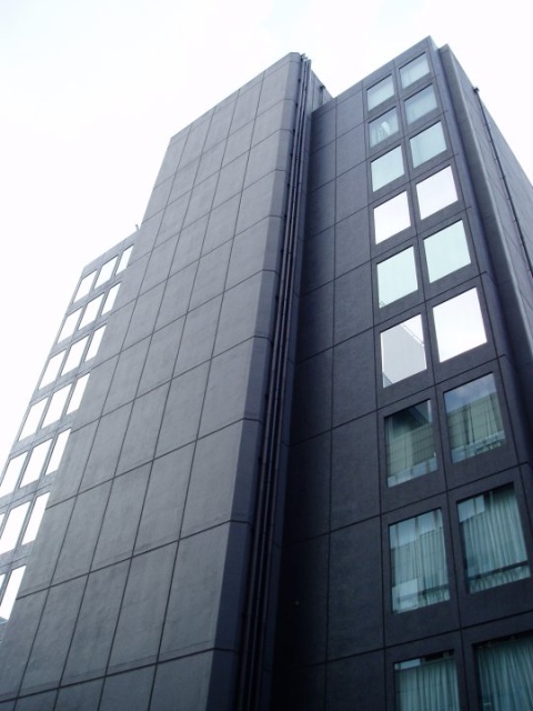 MFPR日本橋本町ビル(中央区日本橋本町)は、グレーの石造りで、洗練された機能美をもった重厚感のある外観となっています。